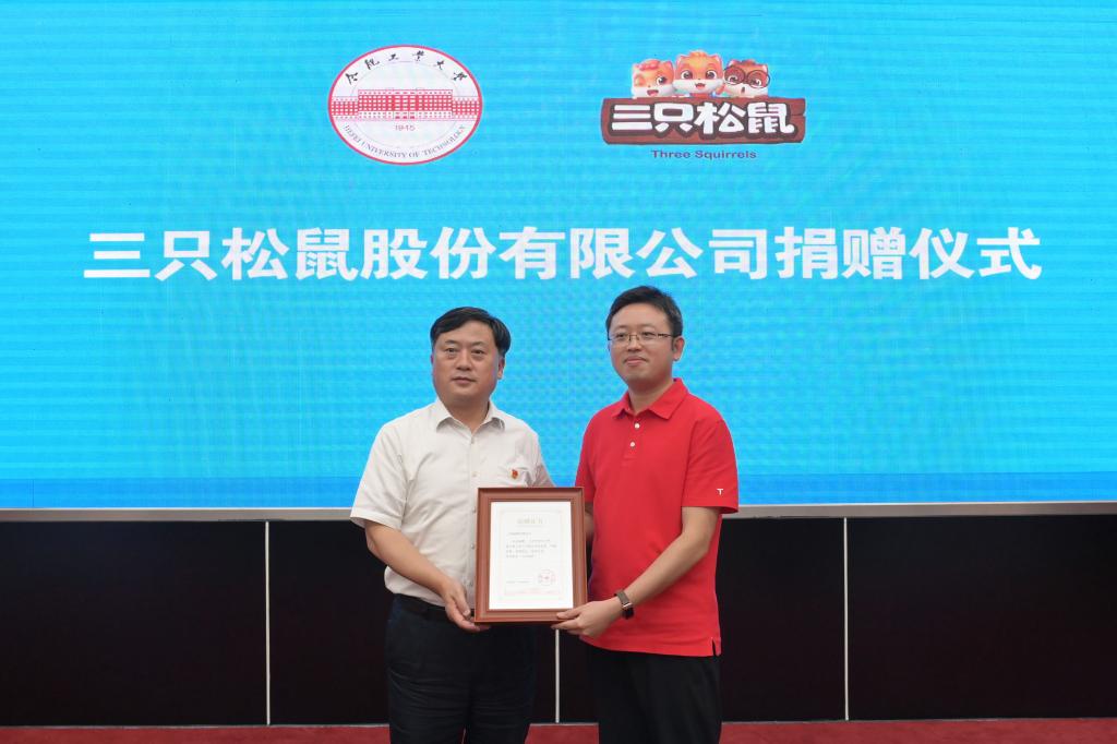 6月21日下午,三只松鼠股份有限公司捐赠仪式在翡翠湖校区举行。校党委书记余其俊,校党委副书记、校友总会常务副会长陈刚出席捐赠仪式。捐赠仪式上,余其俊向三只松鼠股份有限公司党委书记、董事行政总经理兼董秘、我...