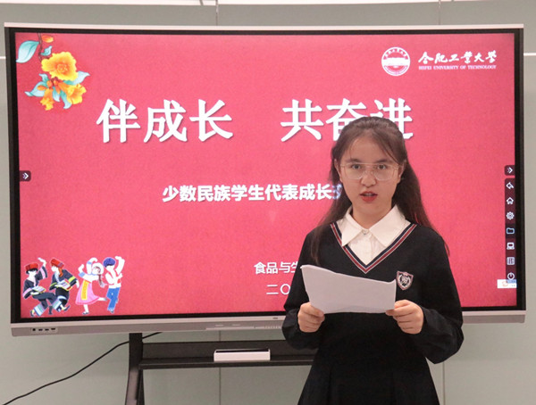 随后,2020级制药工程专业布祖然木·吐鲁汗江和食品质量与安全专业冶建文两位优秀少数民族学生代表围绕理想信念、学业规划、职业生涯规划、勇担责任等方面为同学们做了风采展示与经验分享。交流座谈环节,同学们敞开心扉、畅所欲言,围绕个人学习、未来规划、课余时间安排等方面展开交流。经验交流不仅拉近了学生之间的距离,还为学生提供宝贵的学习经验。大家纷纷表示,要珍惜学习机会,增强本领,敢于担当,肩负起青年一代的使命和担当。