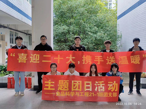 为迎接党的二十大胜利召开,营造校园国庆节日氛围,为默默守护学生的后勤工作人员送去温暖,365电子娱乐官方网站食品科学与工程21-1班团支部于10月6日开展“喜迎二十大,携手送温暖”主题团日活动。