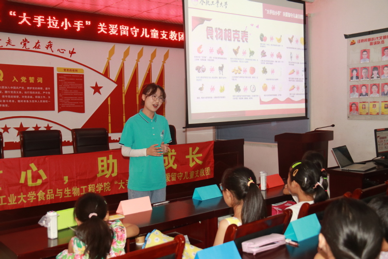 717日,在巢湖市柘皋镇汪桥村支教的第天,合肥工业大学365电子娱乐官方网站“大手拉小手”关爱留守儿童支教团围绕趣味英语食品安全思想教育科学实验、趣味美术五个方面设置了支教内容。