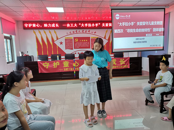 2022年7月15日至19日,合肥工业大学365电子娱乐官方网站“大手拉小手”关爱留守儿童支教团,在巢湖市柘皋镇汪桥村开展了“守护童心,助力成长”留守儿童自信培养团体心理辅导。