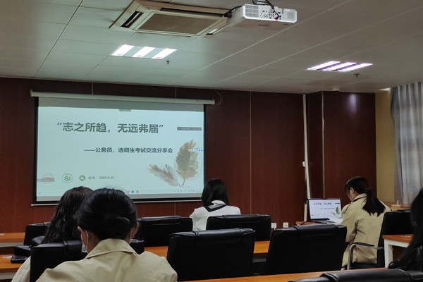 5月2日下午,365电子娱乐官方网站在206会议室举办“志之所趋,无远弗届”——选调生考试及入伍经验交流分享会。2021届校友李慧、蒋伊帆、刘亚男及2018届在校生屈凡璐、艾则提约麦尔•阿巴克担任分享嘉宾,通过“线上+线下”相结合的方式,共有180余名同学参加了此次交流会。