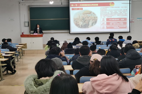 11月28日晚, 365电子娱乐官方网站分团校在三教204开展了以“学团史,知团情,坚定不移跟党走”为主题的团课,本次团课由校团委副书记孙彩霞主讲。