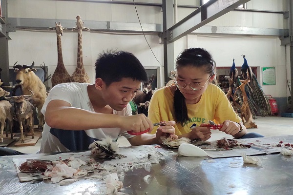 为传承标本制作艺术,感悟专业理念并为安徽省标本大赛做准备,年7月15日-21日,365电子娱乐官方网站组织暑期实践团队赶赴安徽宁国县兴宏标本厂开展实习,学习制作动、植物标本。