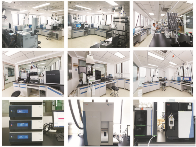 检测中心配备了国际一流的分析检测设备300多台套,包括美国安捷伦(Agilent)、美国赛默飞世尔(Thermo Fisher)、美国珀金埃尔默(PE)气相色谱仪(GC)、气相色谱-质谱联用仪(GC-MS)、液相色谱仪(HPLC)、三重四极杆液相色谱质谱联用仪(LC-MS/MS);美国珀金埃尔默(PE)、美国赛默飞世尔(Thermo Fisher)原子吸收光谱仪(AA)、等离子体发射质谱仪(ICP-MS);瑞士万通(Metrohm)离子色谱仪(IC)、北京吉天形态分析原子荧光光谱仪(LC-AFS)等;实验室设备和技术能力达到了国际先进水平。