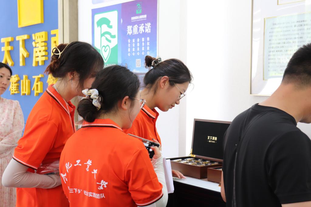 太平畈乡位于霍山县西南边陲,大别山腹地,境内资源丰富,环境优美,有地道中药材1460多种,是历史上有名的中药材之乡,更是霍山石斛的原产地、核心区。在太平畈乡人民政府工作人员的带领下,队员们探访了霍山县石斛养殖基地,实地考察野生石斛和人工养殖石斛的生长情况。当队员们亲眼看到“盘其根于石上,展其叶于林荫”的石斛苗时,无不为仙草绮丽的身姿赞叹。在药王故居了解到石斛的生长历程时,队员吴慧岚感叹道:“得知石斛生长周期之漫长,环境之严苛时,才真正感受到仙草石斛之珍贵。”
