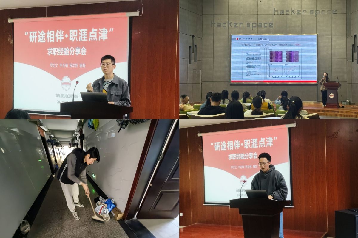 办实事,提升服务意识。倡导每位学员为师生办一件实事,践行全心全意为人民服务宗旨意识。本科生在各自楼宇完成垃圾清理工作,同时对各年级进行卫生宣传引导工作,研究生则面向所在党支部学生开展求职科研经验交流分享会。