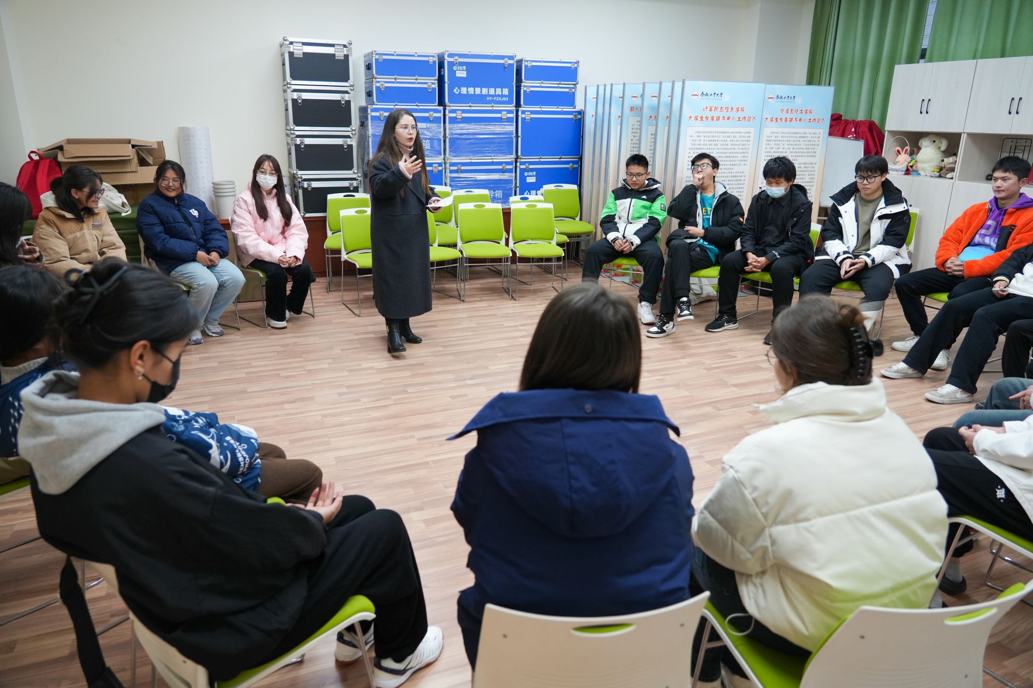 为普及大学生心理健康知识,帮助少数民族大学生培养自尊自信、理性平和、亲善有爱的心理素质,12月13日下午,由校党委学生工作部(处)主办、莳心工作室承办的第四期“我真的很不错”少数民族大学生自我效能感培养团体心理辅导第四次活动,在翡翠湖校区心理中心团辅室成功举办。365电子娱乐官方网站2021级辅导员努尔比耶姆·麦麦提担任团辅领导者,来自全校不同学院28名同学参加活动。