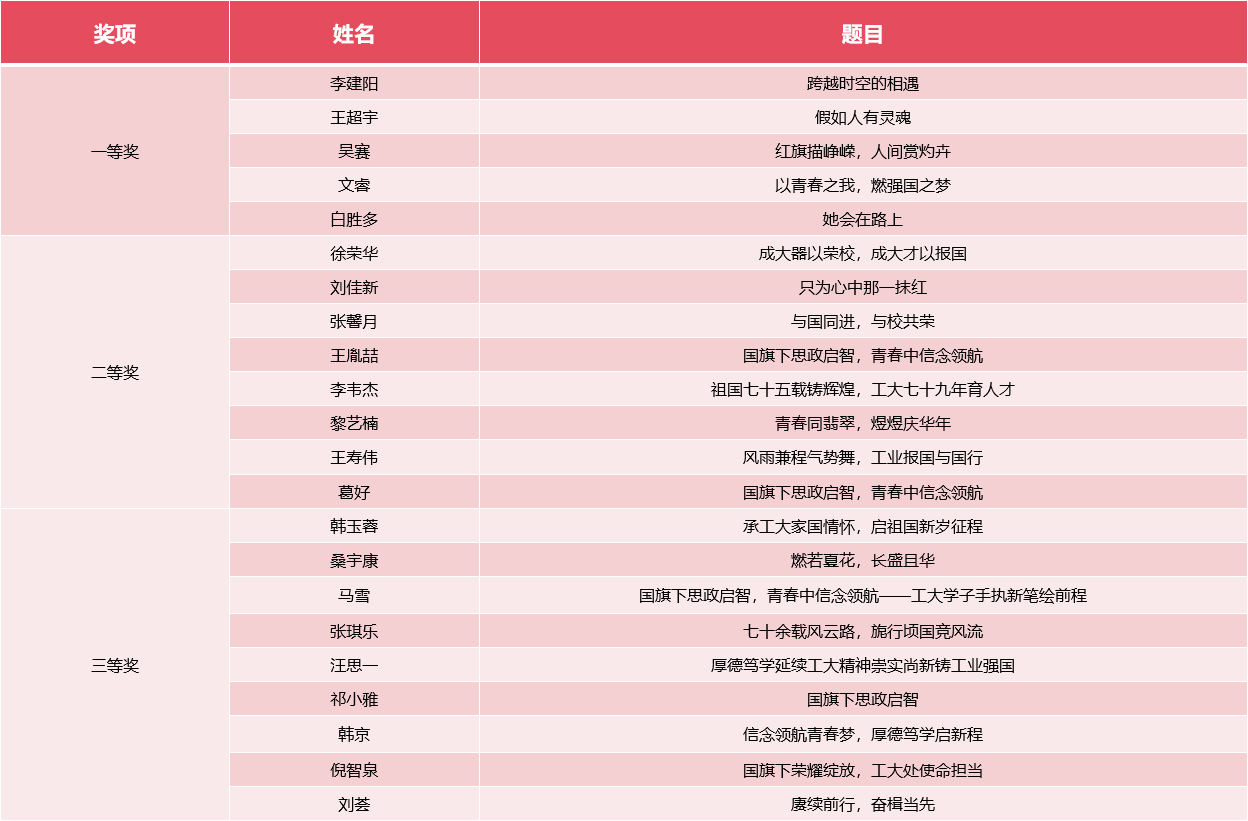 为增强民族自豪感和同学们爱国爱校的情怀,10月15日至10月25日,365电子娱乐官方网站举办“国旗下思政启智,青春中信念领航”笔下华章主题征文比赛。