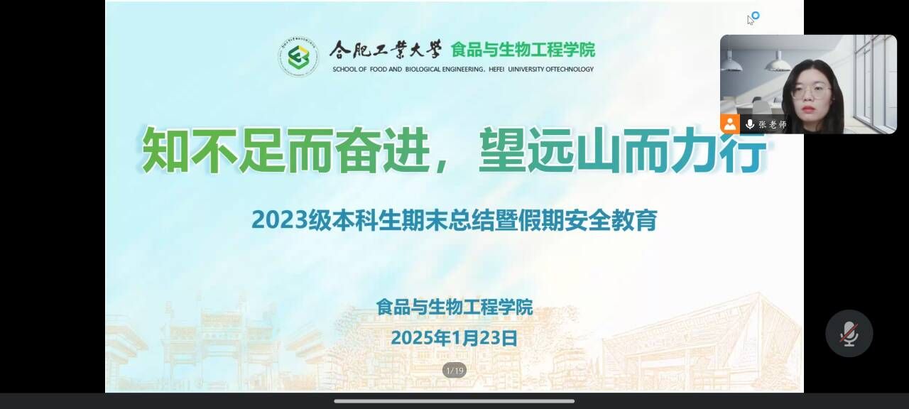 本次会议分为班级学期小结、寒假成长计划、“返家乡”社会实践布置启动和寒假离校安全教育等内容。辅导员老师们首先对过去一学期的学习生活进行了总结,回顾同学们在学术、科研及社会实践等方面的成绩与不足。随后,围绕寒假成长计划思政作业、“返家乡”社会实践、“我的母校我代言”招生宣传专项实践等活动内容进行了布置动员,鼓励同学们积极参与,在享受假期的同时,不忘规划未来,明确自己的职业目标,为即将到来的新学期做好充分准备。最后,会议还特别强调了假期安全的重要性,辅导员们围绕出行安全、求职安全、实习实践安全以及防范网络电信诈骗等内容进行了详细讲解和重要提醒,确保同学们能够度过一个平安、愉快而又充实的寒假。