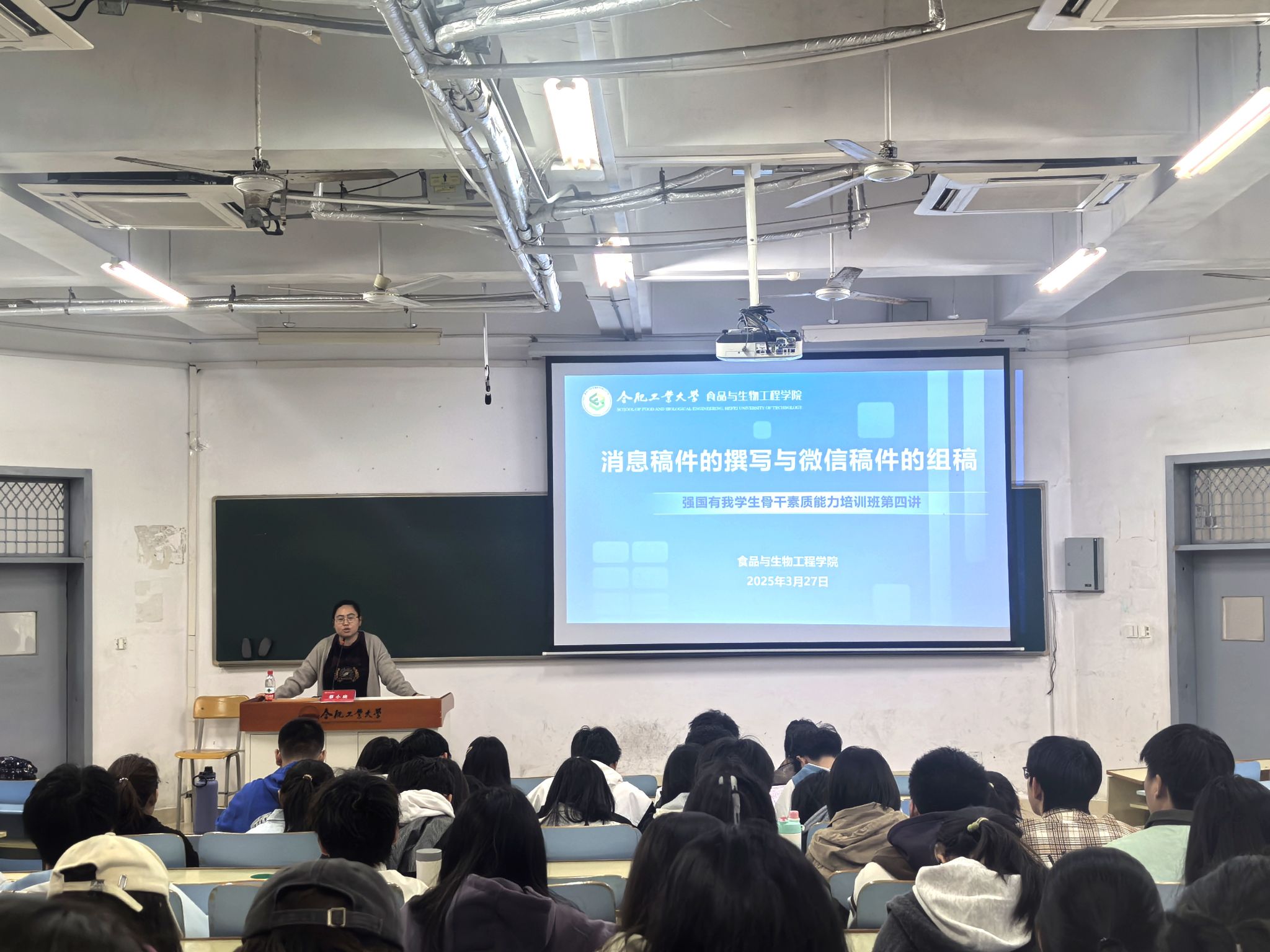 为加强学生干部队伍建设,系统提升学生骨干新闻写作能力,3月30日,365电子娱乐官方网站举办了第四期“强国有我”学生骨干素质能力提升专题培训班第四讲,由《新安晚报》主任编辑蔡小晓担任本次主讲人。