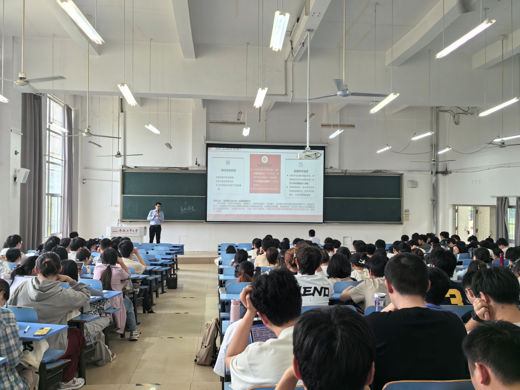 动员会上,李沛军从“为什么考研”“近年考研情况分析”“2026年考研形势展望”和“2026年考研指南”这四个方面进行动员,全面分析当下考研形势,结合个人经历和学生案例,引导学生做足考研前准备、全身心投入备考。随后,章宝从学院发展历程、师资力量、学科平台和科研实力等方面对学院进行全面介绍,着重介绍近两年学院研究生录取情况和考取本校研究生的奖励机制等内容,充分进行学院研究生招生宣传。