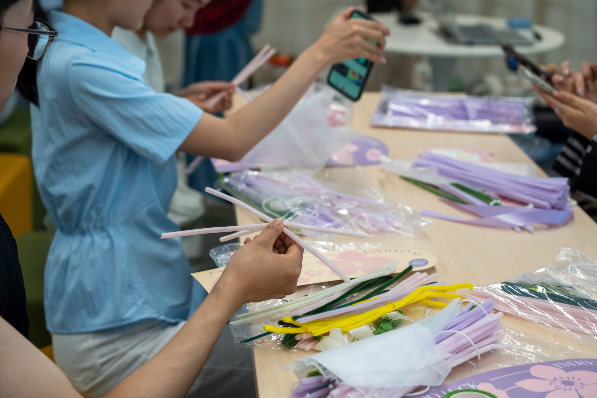 活动最后,工作室还为同学们准备了精美的创意花束手作材料。一群志同道合的伙伴,一边谈论活动体验、一边闲话大学生活,很快一束束精美的创意花束就制作完成了,同学们交流经验、互换作品、拍照留念,在愉悦的氛围中结束活动。