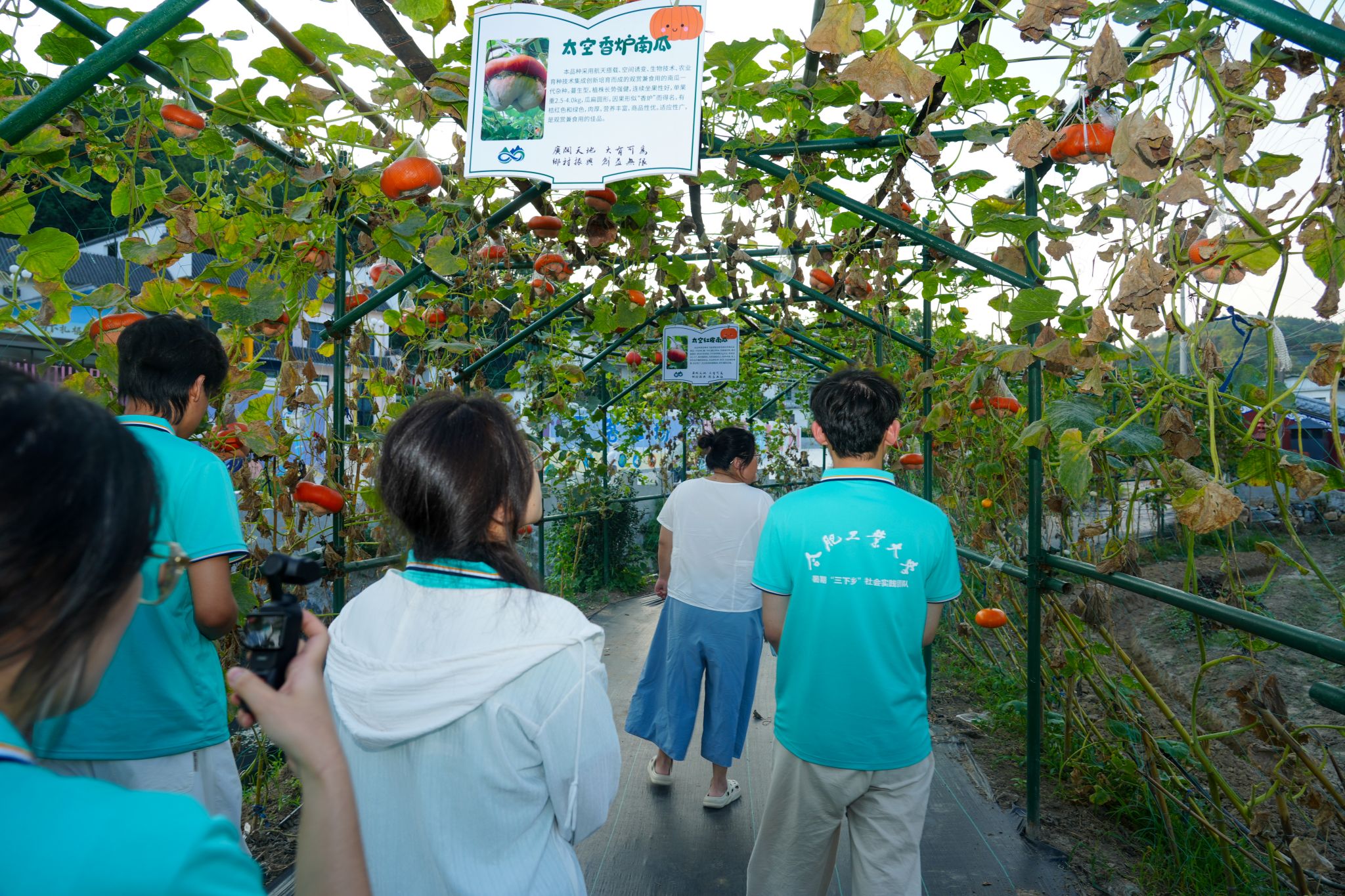 移步太空育种试验田,蓬勃生机扑面而来。太空长南瓜,太空香炉南瓜,杭椒二号等作物造型独特,长势喜人,负责人介绍,试验田仅是育种基地的一小步,后续筹划拓展育种面积至百余亩,实现太空育种产业化,进一步实现“科技兴农”。这片科研前沿阵地,不仅是品种选育与技术示范的宝贵平台,更彰显了π客工场作为未来航天育种成果转化与区域推广核心基地的巨大潜力。