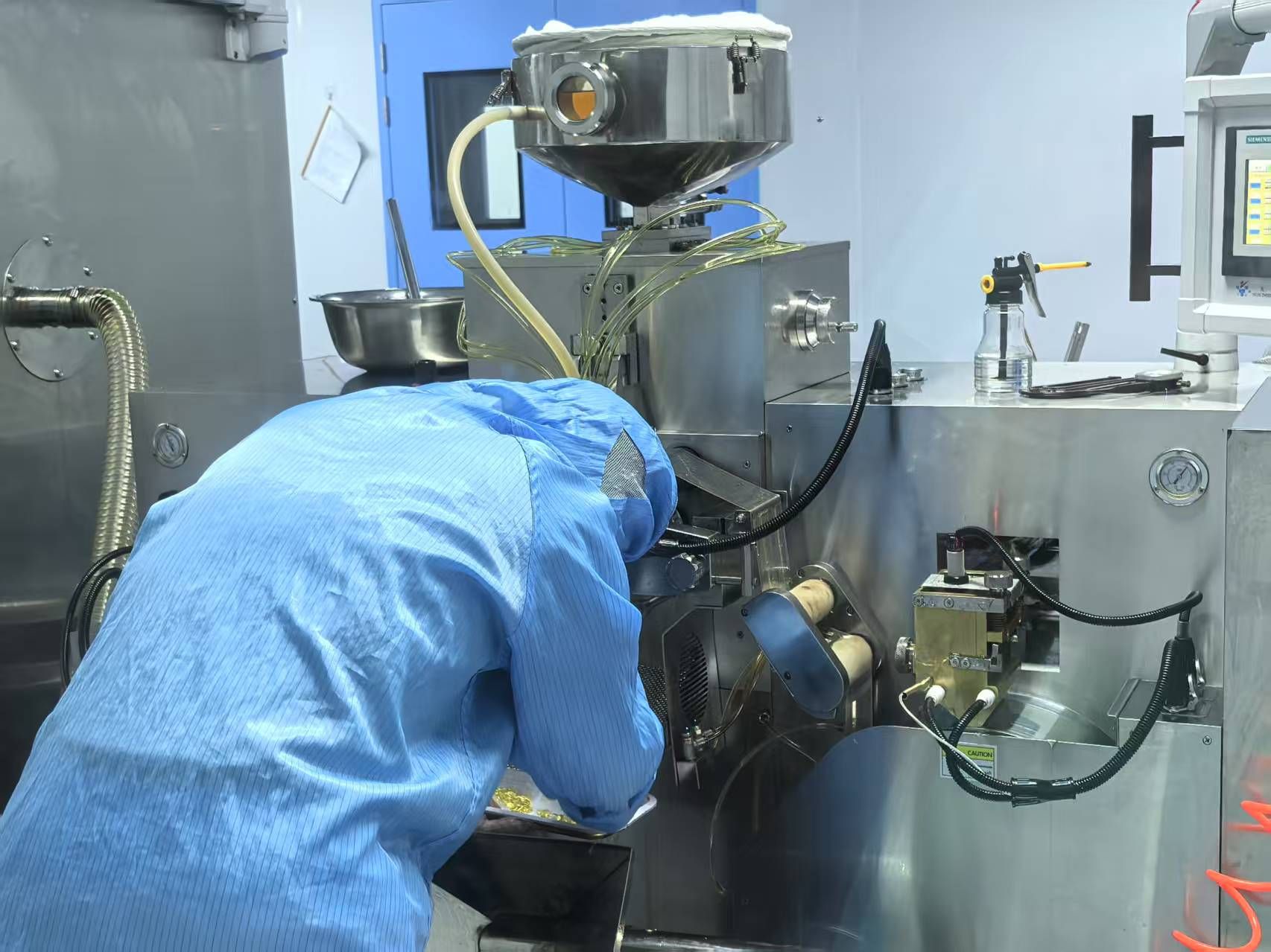 当日上午,在金寨县绿色药业有限公司负责人彭杰的引导下,团队成员开启了生产车间的参观之旅。从原料前处理到成品生产区,各功能区域规划科学、布局合理,充分展现了现代化药企的规范与高效。步入宽敞明亮的车间,智能化、自动化设备有序运转。据公司负责人介绍,目前车间很多设备都已实现全自动化,减少了人力资源的消耗,大大提高了生产效率。