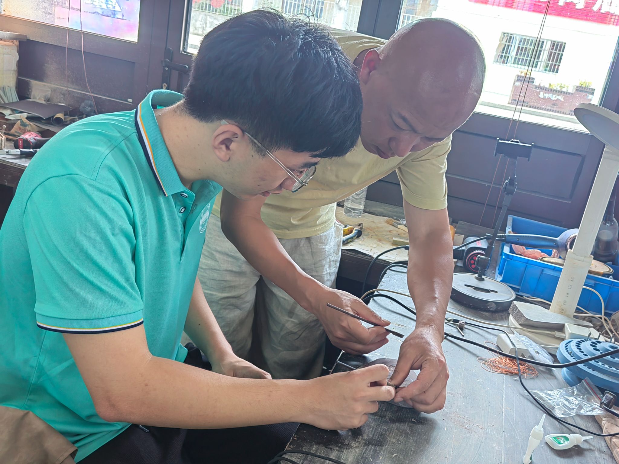 7月7日上午,团队来到紫金砚冯长文大师工作室。虽然紫金砚本身并非食品,但其承载的匠心精神,文化内涵与创新路径为食品学子带来深刻启发。冯师傅现场演示了“相石—设计—雕刻—打磨”的全流程,其行云流水的刀法令队员们叹为观止。并且冯师傅“每一刀都要顺应石纹”的技艺,类比于食品加工中尊重原料特性的重要性。