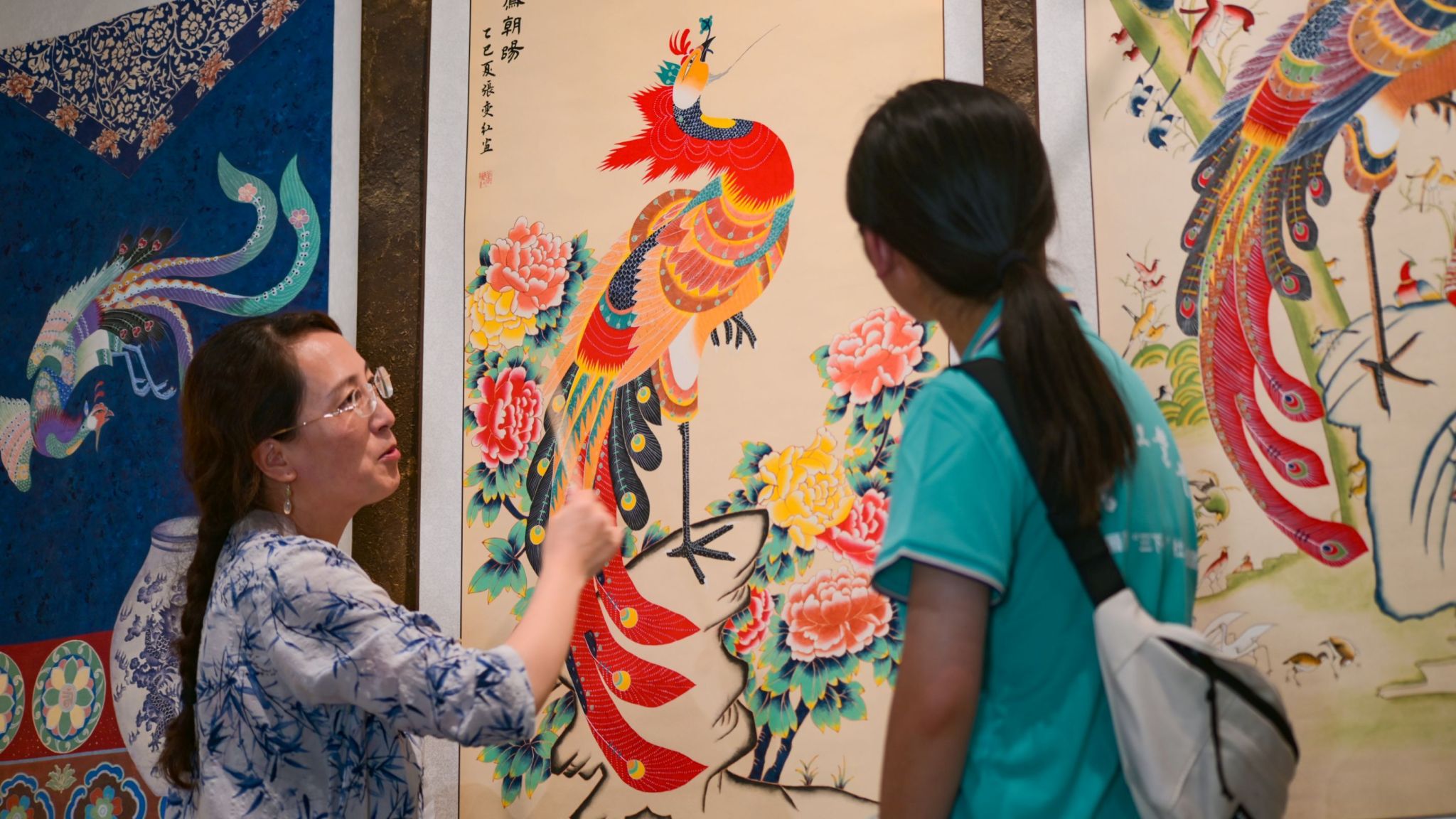 在凤画大师工作台前,成员们屏息观摩精湛工笔技法,近距离感受七彩凤凰的勾勒着色与深邃寓意。团队深入调研凤画的“新生”:记录以凤画为灵感的文创产品开发种类与市场反响;了解研学课程设计及受欢迎程度;探讨古老艺术如何赋能乡村文旅产业链升级,让凤凰图腾在乡村振兴的画卷中焕发新生、振翅高飞。