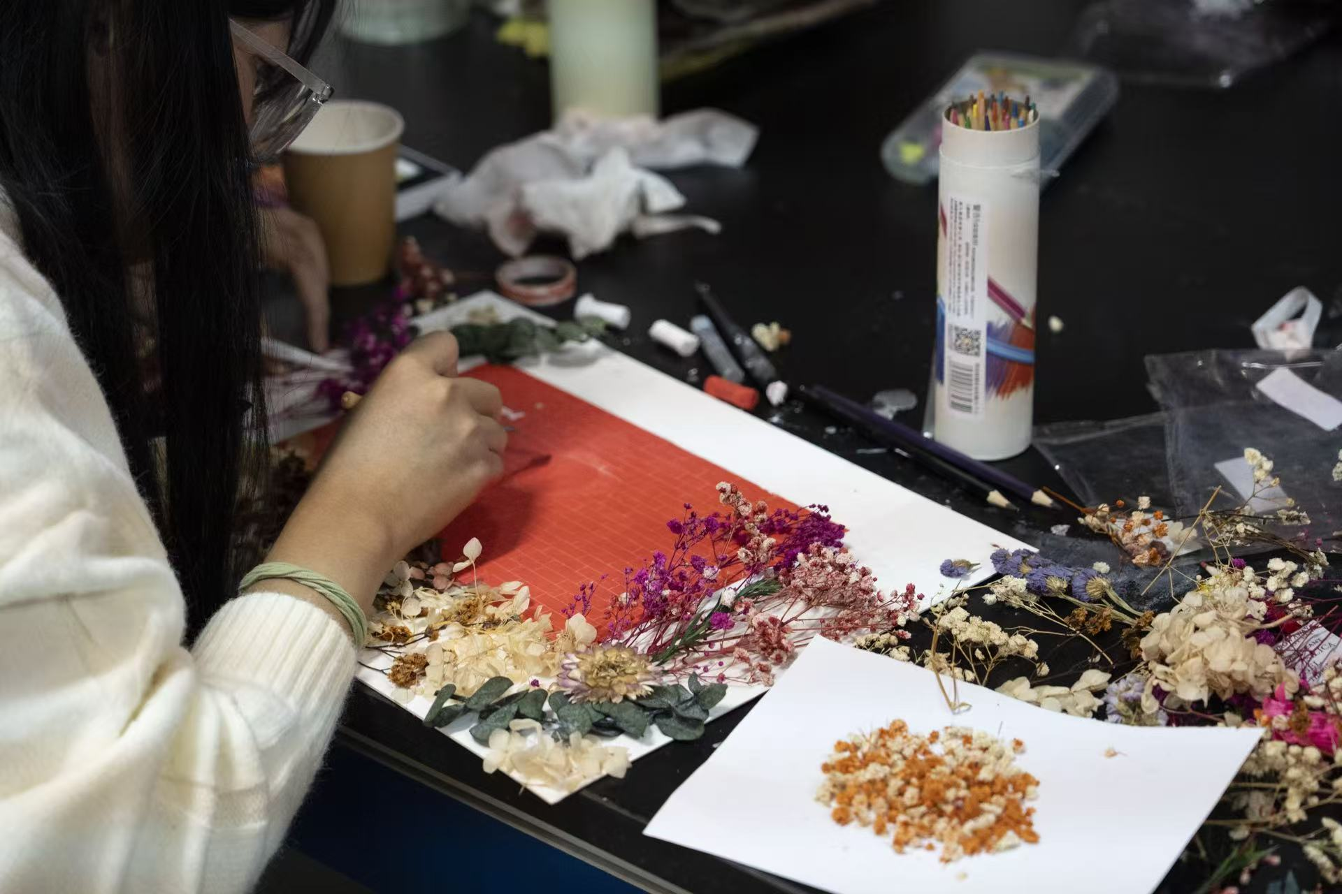下午举办的干花画制作比赛以“拾花缀景忆校庆,妙笔生花绘工大”为主题,鼓励参与者以校园景观为题材进行艺术创作。同学们利用干花材料,巧妙构思、精心制作,在提升审美与动手能力的同时,也进一步深化了对校园文化的情感认同。优秀作品创作者将获得第二课堂星级认定,有效激发了学生的参与热情。