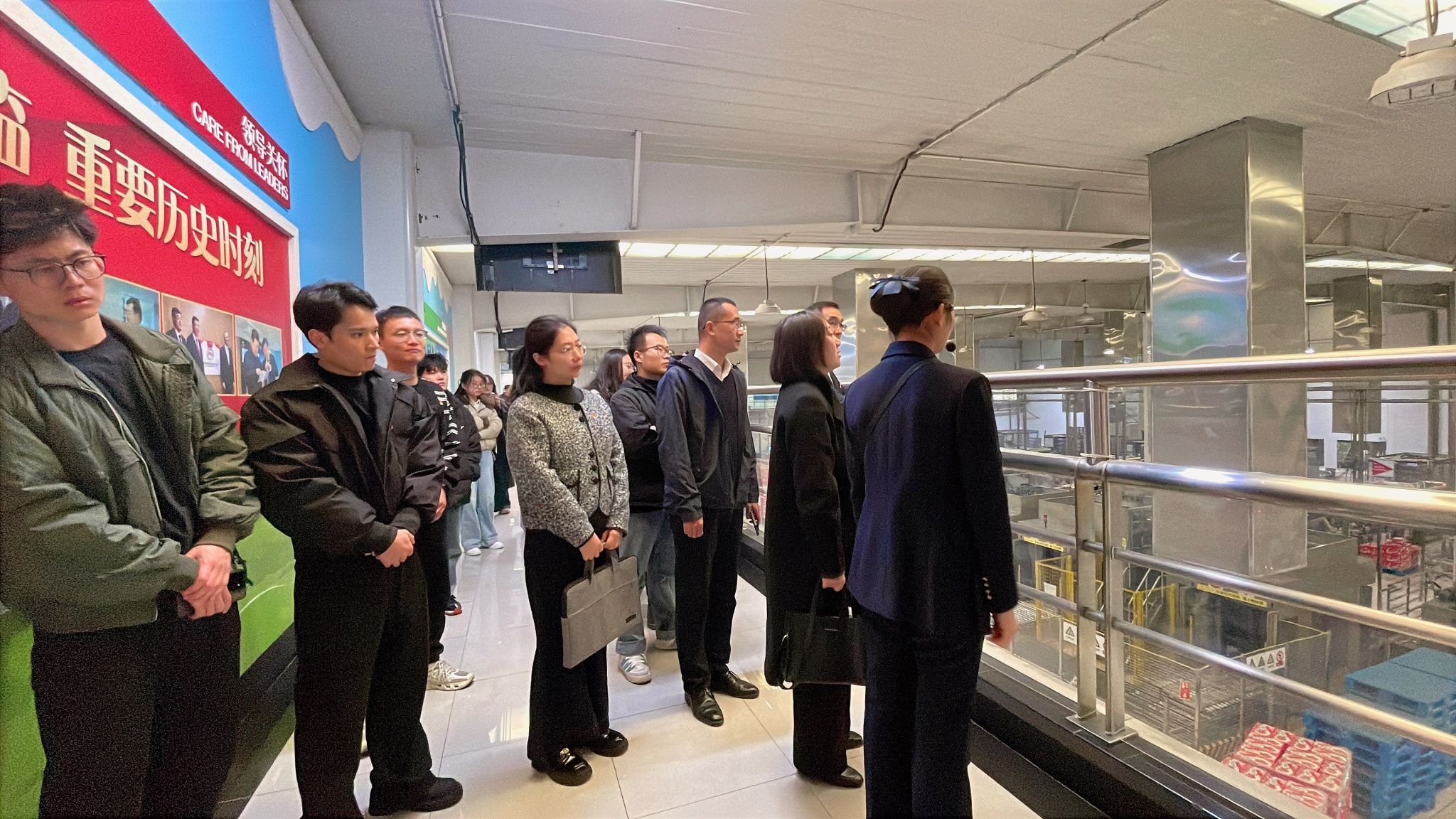 活动伊始,在伊利工作人员的引导下,学院师生一行参观了公司的现代化生产车间与化验中心,近距离了解了伊利在品质管控、智能制造与数字化转型方面的实践成果。