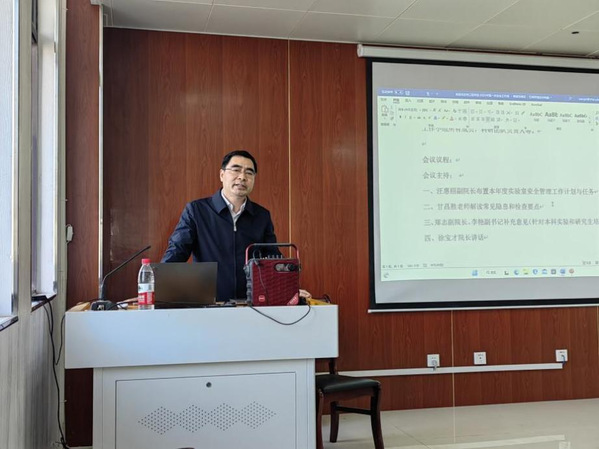 首先,徐宝才院长强调了实验室安全的重要性,对学院实验室安全管理工作给予了肯定,并对学院2023年度实验室安全管理工作提出了“四个全覆盖”的总体要求:一、安全管理制度全覆盖。对标教育部、学校相关制度和要求,完善健全学院实验室安全管理制度。二、安全责任区域全覆盖。学院实验场所众多,功能上科教融汇,每一块区域都要落实到人,责任到人。三、安全检查范围全覆盖。学院学科多,涉及隐患广,安全检查要做实做细,不留死角。四、安全责任担当全覆盖。实验室安全是大家共同的事,全院师生都有责任,都应担当。