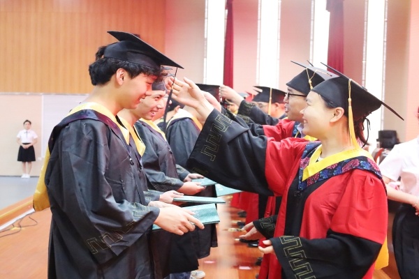 仪式在庄严隆重的国歌声中拉开序幕,365电子娱乐官方网站院长、学院学位分委员会主任徐宝才教授宣读了《关于授予365电子娱乐官方网站2022届毕业生学位的决定》,校、院领导老师为全体学位获得者扶正流苏、颁发学位证书并合影留念。