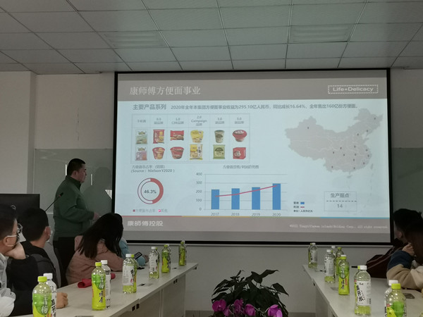 12月1日下午,学院师生前往康师傅控股的合肥顶津食品有限公司。公司负责人为同学们简要介绍了康师傅公司的业务,并为回答问题的同学送上了引有工大校训的小礼品。此外,在该公司工作的学长带领同学们参观了饮料的生产线,对饮料生产过程做了详细的介绍。他同时结合自身经历,激励同学们明确方向,努力学习。