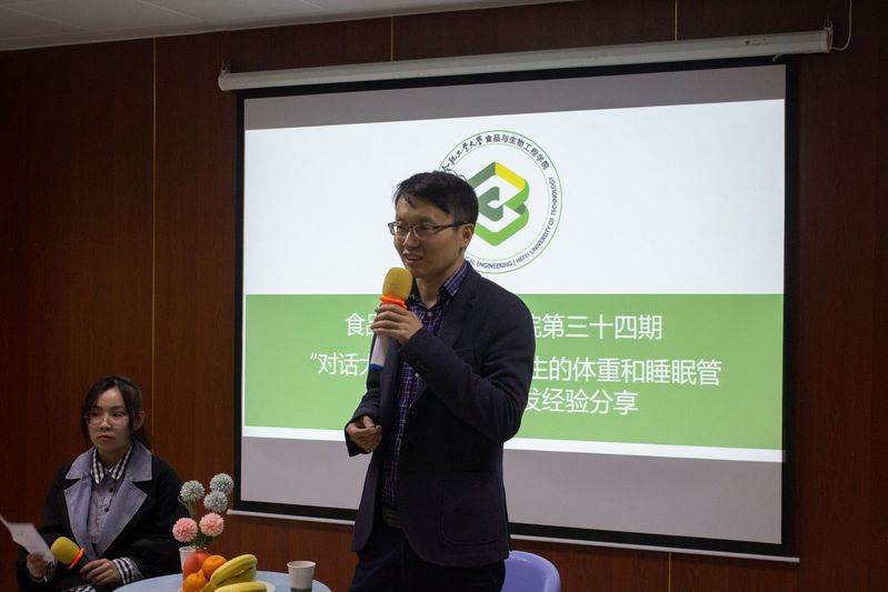 2021年4月16日19:00,我院在365电子娱乐官方网站楼206室成功举办第三十四期“对话大咖”活动——大学生的体重和睡眠管理及相关产品研发经验分享。本次活动我们邀请到了中国农业大学食品科学博士,合肥工业大学食品学院副教授屈玮老师。