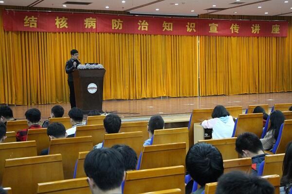 会上,张欢老师从结核病的常见症状、传染源、传播方式等方面,为同学们讲解了结核病常识,重点讲解了结核病防治的注意事项:早发现早治疗,注意开窗通风、消毒,接种卡介苗、经常锻炼身体,提高自身的免疫力等。随后,张老师又为同学们普及了国家相关治疗优惠政策,并积极动员大家参与到结核病防治宣传工作中,努力营造全社会共同关注结核病的浓厚氛围。在接下来的互动答疑环节中,同学们争先恐后地抢答问题,张老师也解答了部分同学存在的疑惑之处,现场气氛热烈。