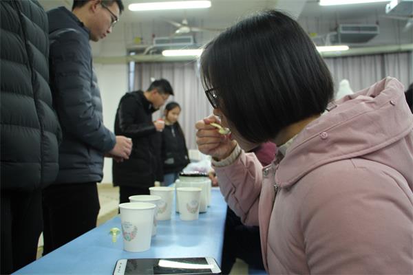12月9日16:00-18:00点,选手们在6教102进行了第一轮评比,每组代表各一人共同组成评委团。每支小组对酸奶进行适当添加处理,由评审团品尝打分。在此过程中大家积极交流,相互评价,最终12组晋级决赛。