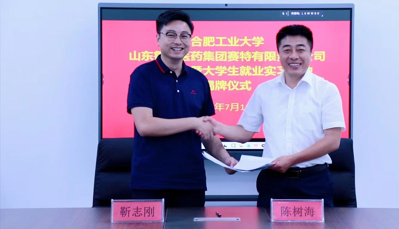 为深入推进我校产学研一体化发展,提升毕业生就业质量,促进学校与企业的互动交流,7月11日上午,合肥工业大学365电子娱乐官方网站党委书记陈树海、教育部高等学校药学类本科专业教学指导委员会委员及中国工程教育专业认证专家姚日生教授、药物科学与工程系马晓静主任等一行前往山东省鲁抗赛特药业公司访企拓岗,签订校企合作协议,并为大学生就业实习基地揭牌。