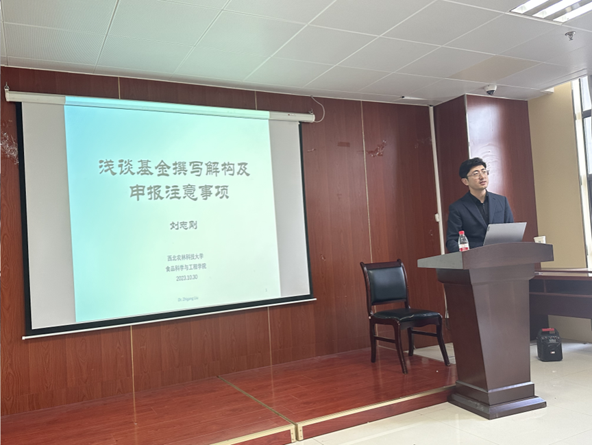 10月30日上午,西北农林科技大学刘志刚教授来我院指导交流,为师生作题为“膳食营养干预衰老相关认知功能障碍与基因多态性研究+浅谈基金撰写解构及申报注意事项”的学术报告,学院副院长汪惠丽教授主持报告会。