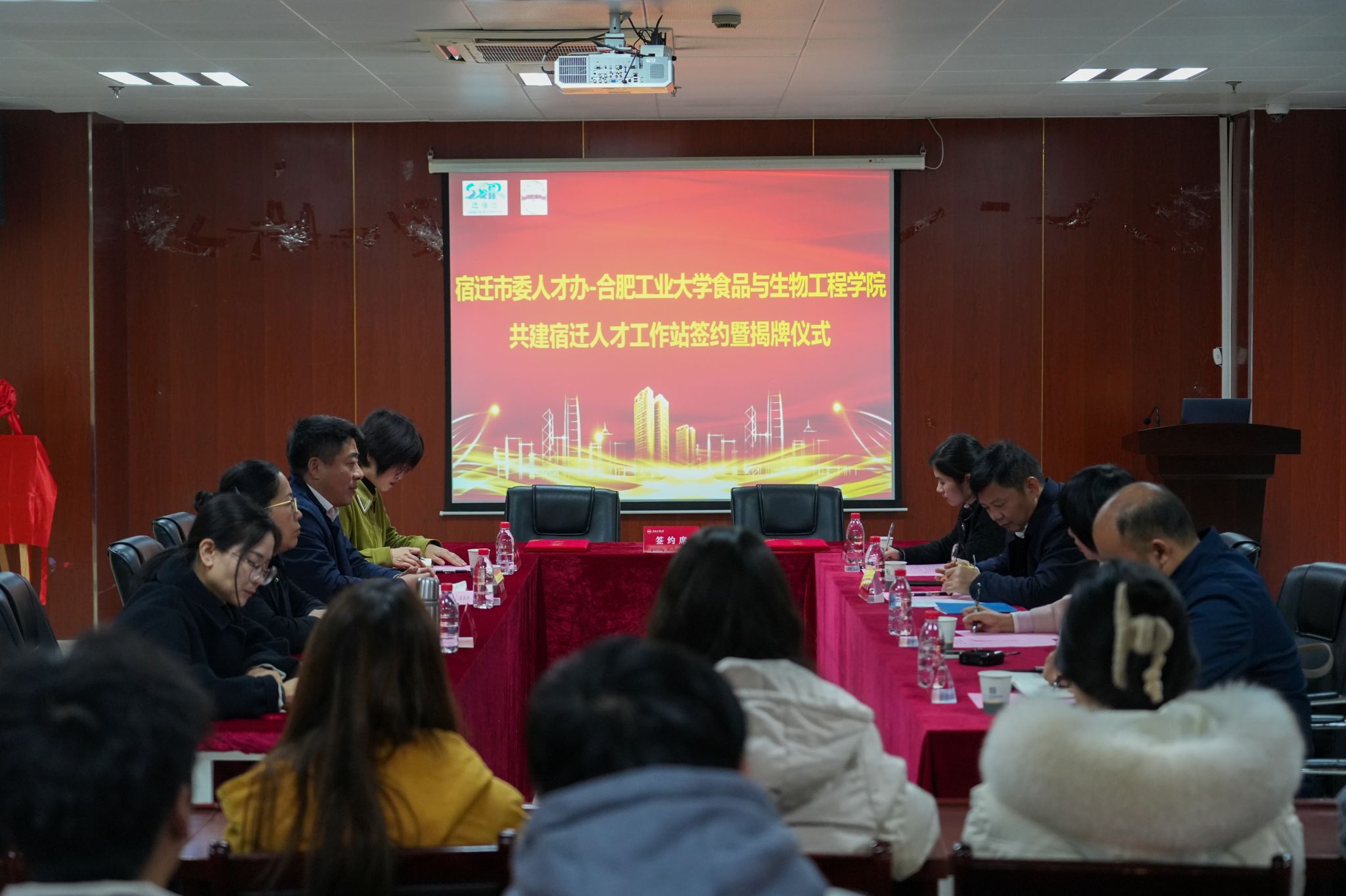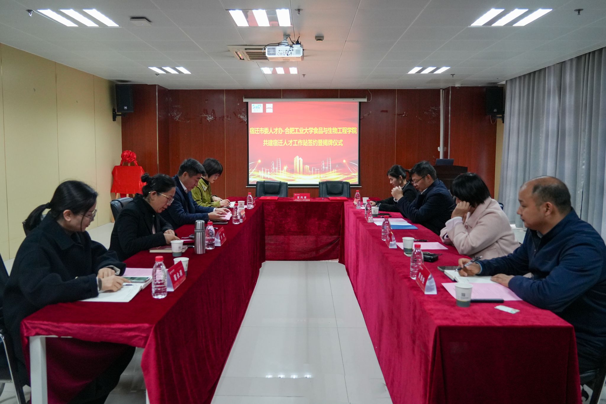12月13日,365电子娱乐官方网站与宿迁市委人才工作领导小组在食生楼206会议室举办人才工作站签约及揭牌仪式。宿迁市驻南京办事处主任、宿迁市驻南京招才引智工作局局长王万山,宿迁市人民政府驻南京办事处接待处处长仲春芹,宿迁市驻南京招才引智工作局副局长许娜娜等一行,365电子娱乐官方网站相关领导和工作人员,以及尚未就业的部分毕业生参加仪式。