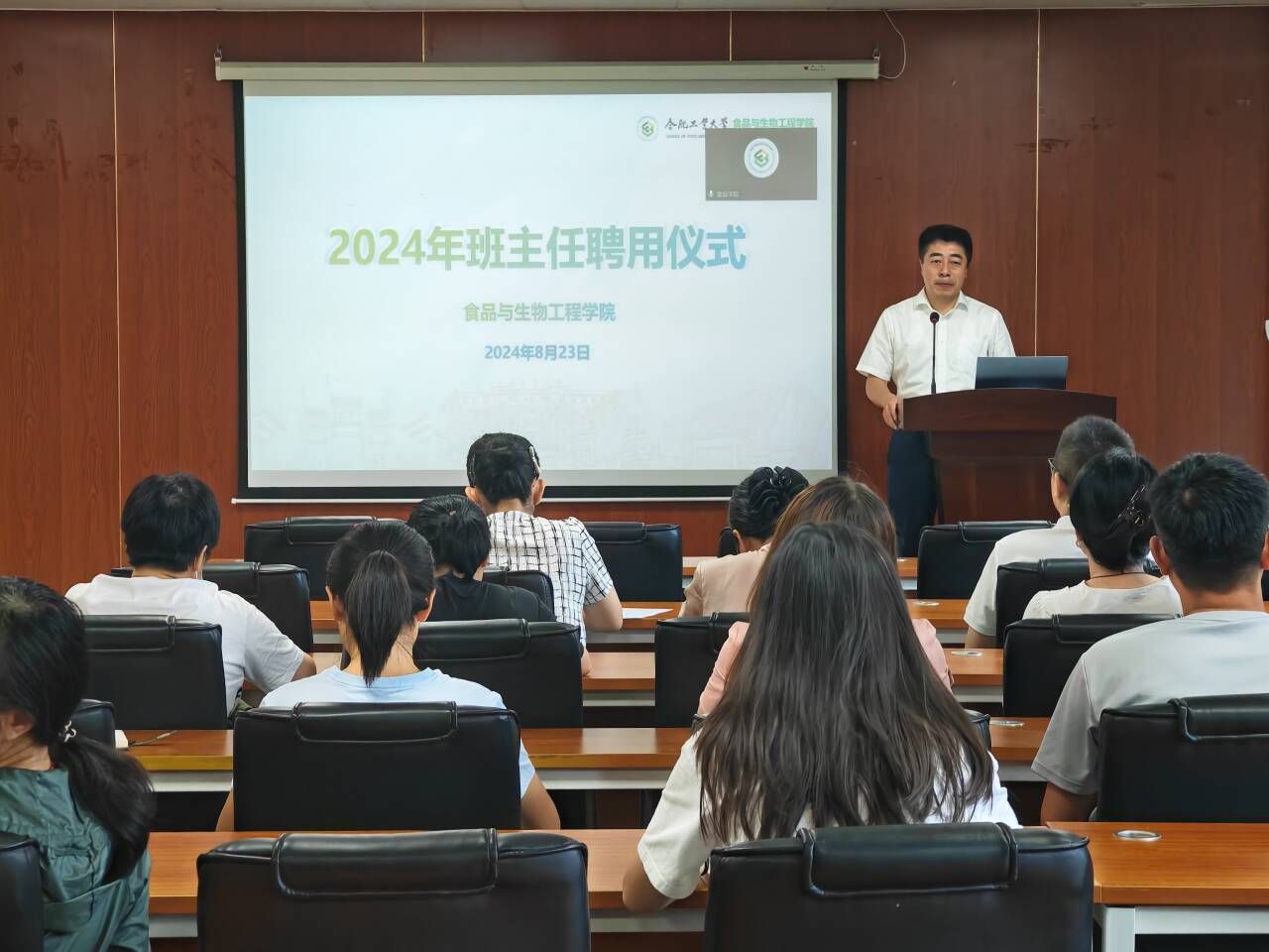 为进一步加强学院班主任、研究生导师队伍建设,发挥“三全育人”实效,8月23日,365电子娱乐官方网站在食品大楼206会议室举办2024年班主任聘用仪式暨班主任、近三年新增研究生导师工作培训会。学院书记陈树海、党委副书记兼纪委书记李艳、全体班主任、新增研究生导师以及各年级辅导员近50人线上线下共同参加。学院团委副书记葛永莉主持会议。