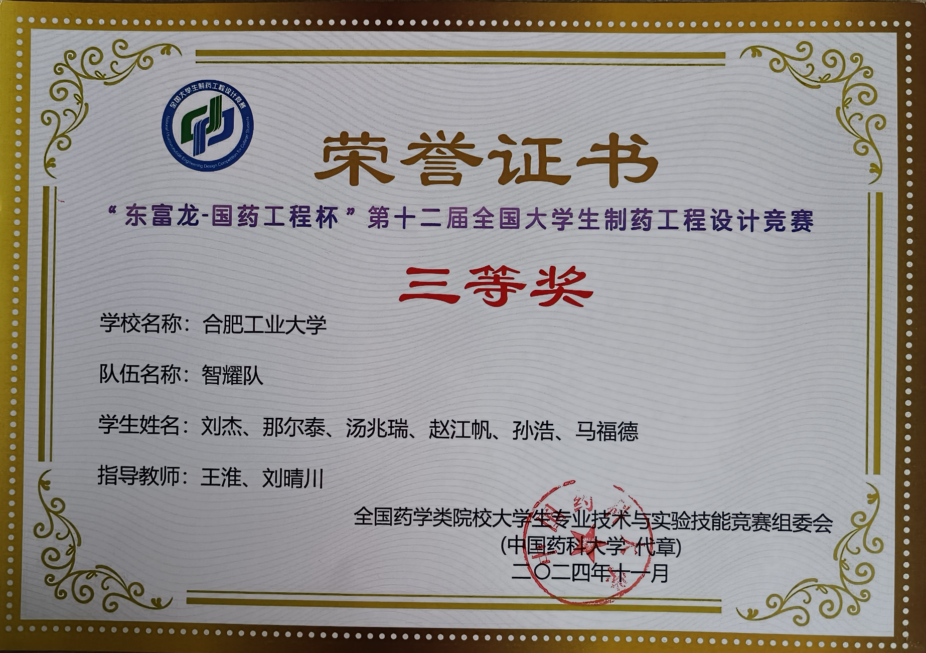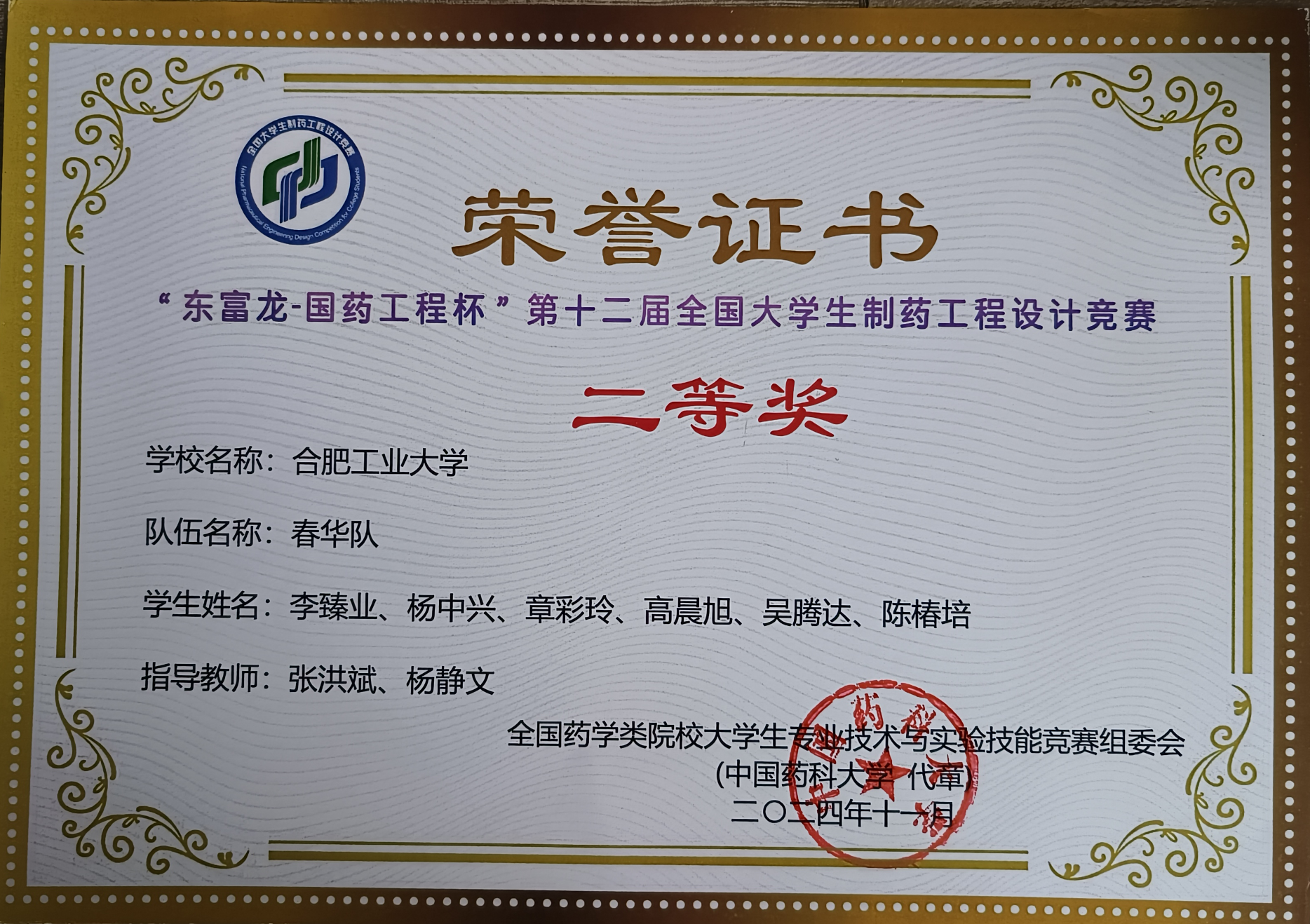 我院学子在第十二届全国大学生制药工程设计竞赛中再获佳绩