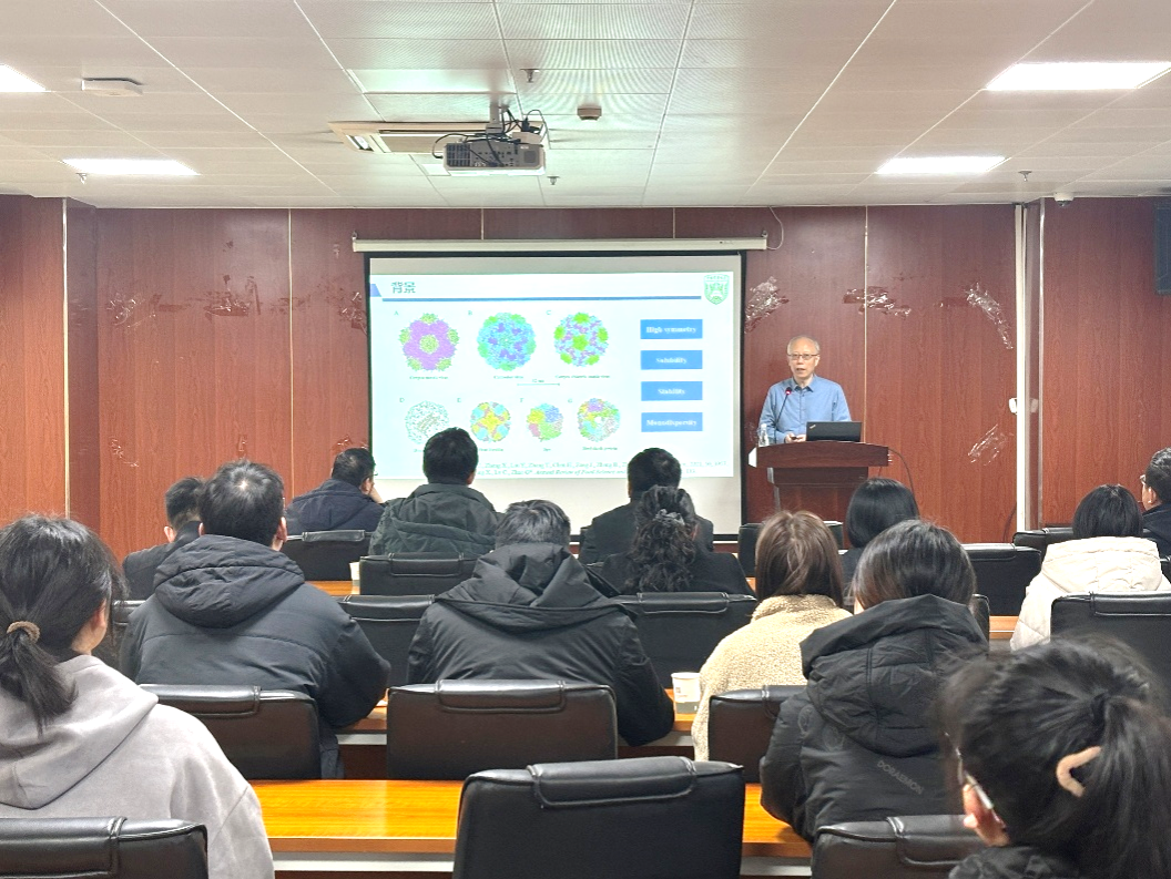 赵广华教授以“笼形铁蛋白单分子及超分子自组装设计及其应用”为题,介绍了其团队在铁储藏蛋白领域的系列研究成果。赵广华教授团队提出基于"亚基关键界面设计"的轴对准组装策略,成功制备出蛋白超分子自组装体,并将笼形铁蛋白开发为多维度纳米载体,用于食品营养分子的包埋与递送。该团队还结合铁蛋白的矿化能力与自组装策略,构建超分子级联光催化平台,实现二氧化碳转化利用,推动绿色低碳技术发展,助力我国"双碳"战略。在互动环节,赵广华教授与学院师生进行了深入交流,现场气氛热烈,学术氛围浓厚。报告会结束后,赵广华教授一行参观了365电子娱乐官方网站大楼,并与相关研究方向的老师进行了交流。赵广华教授对实验室的科研条件和研究成果给予了高度评价,并就具体的研究问题与教师代表进行了深入探讨。他希望双方能够进一步加强合作,共同推动食品科学领域的发展。
