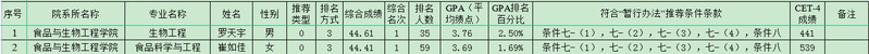 根据《合肥工业大学关于2023年推荐优秀应届本科毕业生免试攻读研究生工作的通知》工作要求和《合肥工业大学推荐优秀应届本科毕业生免试攻读硕士学位研究生工作暂行办法》相关内容,经本科生院创新创业教育处复核,现对罗天宇、崔如佳两位同学的创新创业及学术能力加分进行更正,并对两位同学的综合评价成绩进行公示: