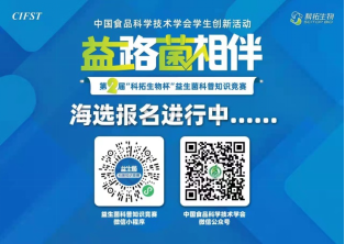 为科学普及益生菌知识,激发在校大学生对益生菌的学习热情,促进师生之间的人文交流,助力更多青年人才成长,为益生菌产业的未来储备力量。2022年,中国食品科学技术学会与北京科拓恒通生物技术股份有限公司,共同举办中国食品科学技术学会第二届“科拓生物杯”益生菌科普知识竞赛。