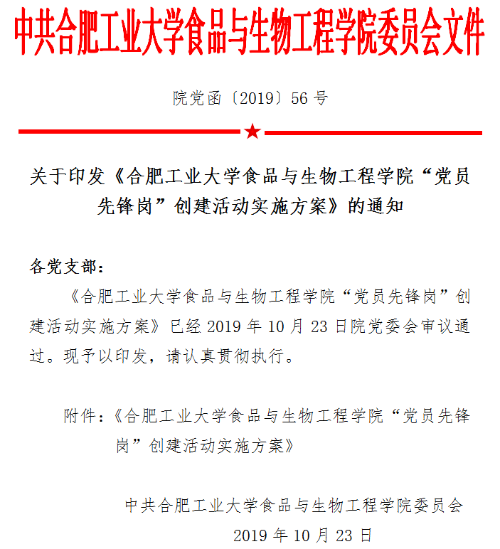 关于印发《合肥工业大学365电子娱乐官方网站“党员先锋岗”创建活动实施方案》的通知
