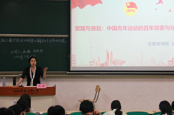 首先,沈媛通过五•四运动的爆发和中国共产党的成立等伟大历史事件阐明近代中国先进分子已经觉醒并已经走上追求民族独立和发展进步的道路,在中国共产党的领导下,中国青年运动变成有组织、有主题、有目标、有规模的社会运动。接着,沈媛介绍了新民主主义革命时期、社会主义革命和建设时期、改革开放和社会主义现代化建设新时期及中国特色社会主义新时代四个历史时期的中国青年运动,详细介绍了中国青年运动的百年探索历程,并深入讲解了中国青年如何奋勇投身民族独立和人民解放的历史洪流,中国青年为什么是时代的坚定者,中国青年运动为什么要坚持与人民相结合、与实践相结合。最后,沈媛借用莫言写给青年朋友的一封信《不被大风吹倒》,告诉同学们要在“顺境面前不迷失,困境面前不迷茫”,引导同学们牢记中国青年百年来的使命,努力成长为担当民族伟大复兴的时代新人。