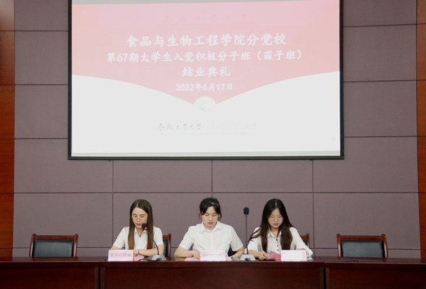 6月17日下午,365电子娱乐官方网站分党校第67期入党积极分子培训班(苗子班)结业典礼在翡翠湖校区科教楼A座第五会议室顺利举行。学院分党校第67期入党积极分子培训班(苗子班)学员参加了典礼。