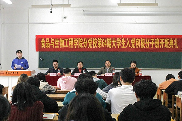 10月28日下午,365电子娱乐官方网站分党校第64期大学生入党积极分子班开班典礼于翠三教208顺利举办。365电子娱乐官方网站党委书记、分党校校长陈从贵,学院党委副书记兼纪委书记、分党校副校长李艳,学院团委书记、2019级辅导员万代林,学院学生工作办公室副主任、研究生辅导员李童童以及入党积极分子班全体学员参加了本次典礼。