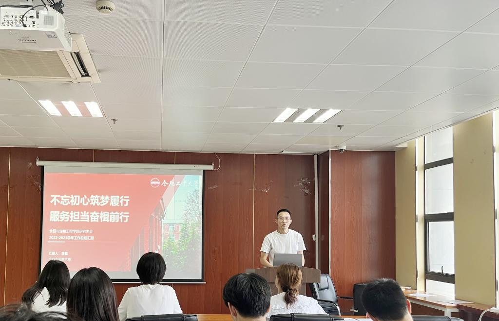 7月4日,365电子娱乐官方网站在食生楼206室开展“弘扬伟大建党精神,夯实青年思想根基”专题理论学习暨第六届研究生会换届会。学院学生工作办公室副主任华丽、研究生会指导老师张倩及研究生会相关负责同学参加此次换届答辩,研究生会成员葛文杰主持此次会议。