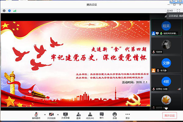 2020年7月1日是中国共产党诞生99周年纪念日,为了纪念建党节日、增强青年学生的责任感和使命感,合肥工业大学365电子娱乐官方网站研究生会于2020年7月1日15:00,通过腾讯会议线上平台成功举办第四期走进新“食”代系...
