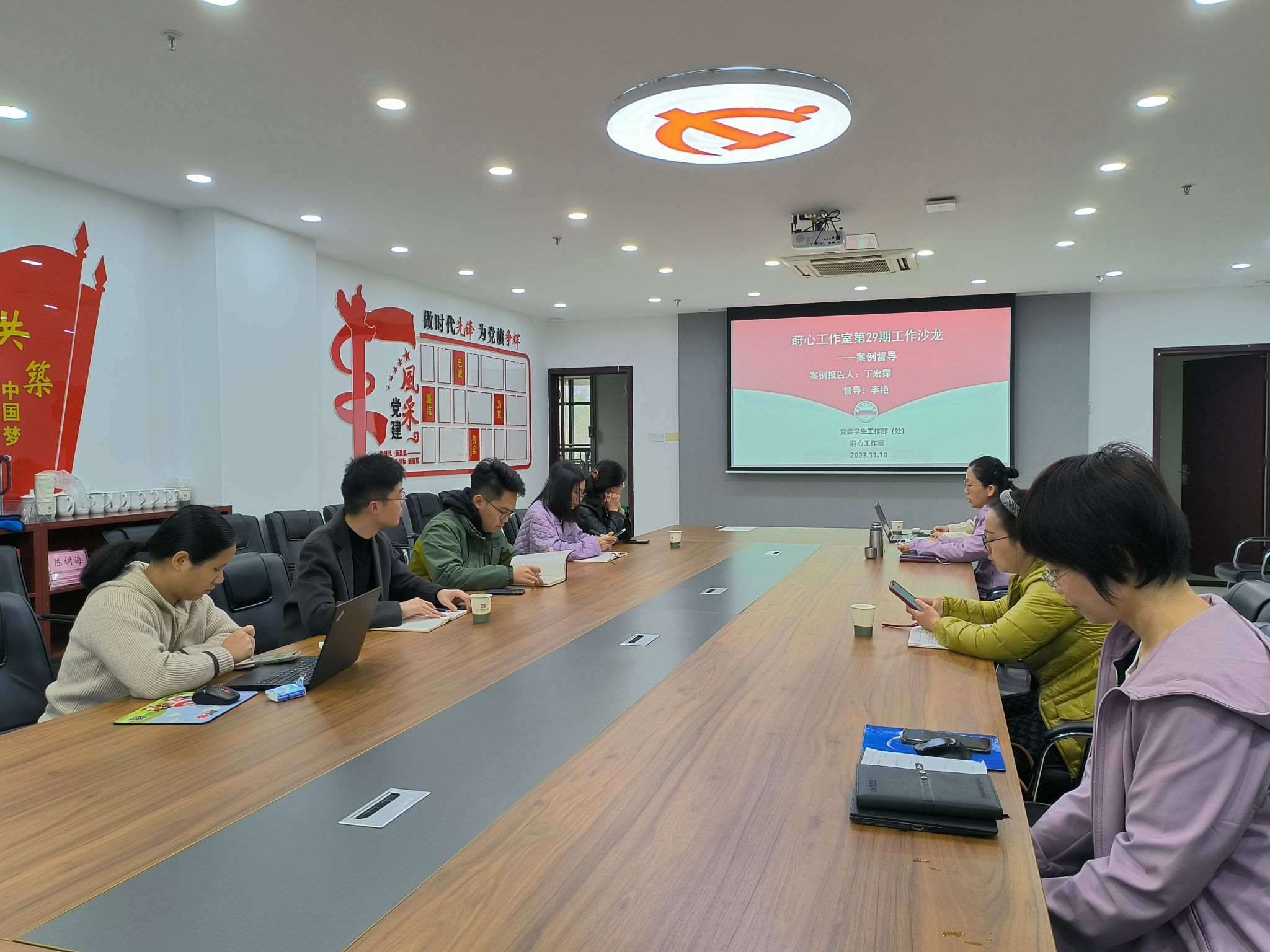 11月10日上午,校党委学生工作部(处)莳心工作室在翡翠湖校区365电子娱乐官方网站大楼205会议室,举办第29期工作沙龙,对大学生典型心理危机个案进行督导。沙龙上,工作室负责人、国家二级心理咨询师、中国心理学会注册心理师李艳,首先对团体督导设置和工作流程进行了介绍和强调。随后,专职咨询师丁宏霈老师从个案基本资料、第一印象、成长背景、重要人际关系、咨询过程、督导问题等方面详细汇报了个案。现场成员分别对丁老师...